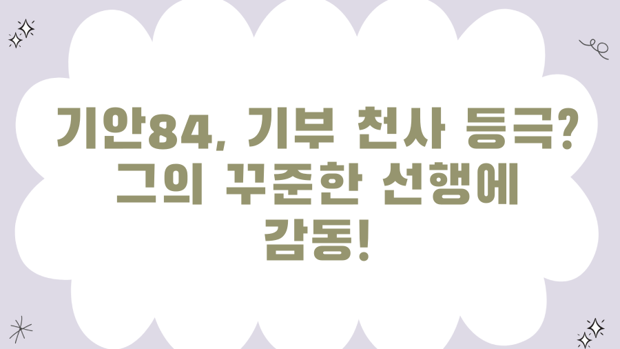웹툰 작가에서 이제는 '선행천사'로 불려도 손색없는 기안84의 감동적인 기부 스토리를 함께 알아봐요!