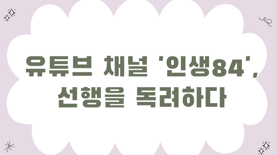 유튜브 채널 '인생84', 선행을 독려하다